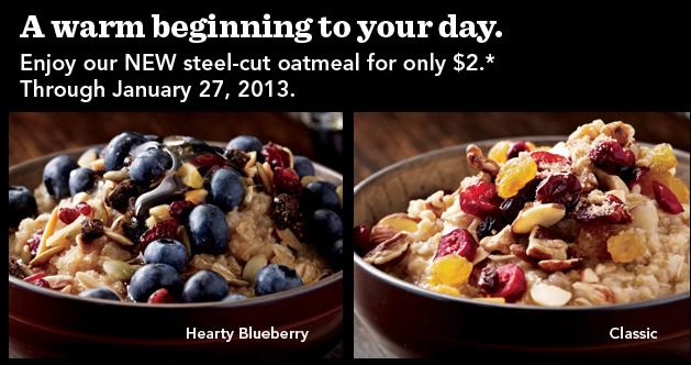 Starbuck’s – $2 Oatmeal with purchase of a beverage, (exp. 1/27)