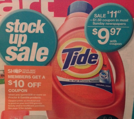 (makes it $15.49) - Tide Detergent, 100 oz, $11.47