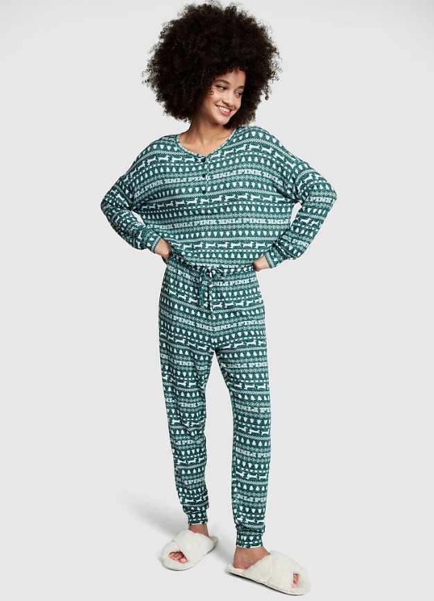 Jaclyn Waffle Knit Long Sleeve Pajama Top & Pants – $11.23 (reg. $36)