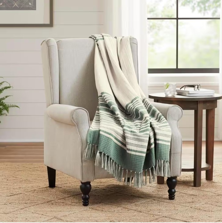 Green Stripe Turkish Cotton Gauze Throw Blanket with Fringe – $9.99 (reg. $39.97)