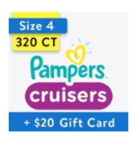 Walmart has a number of Pampers Diaper bundle packs in-stock and each comes with a $20 or $25 Walmart gift card!