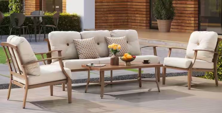 4-Pieces Aluminum Patio Conversation Set Sofa Set with Beige Cushions – $890 (reg. $1,467.41)