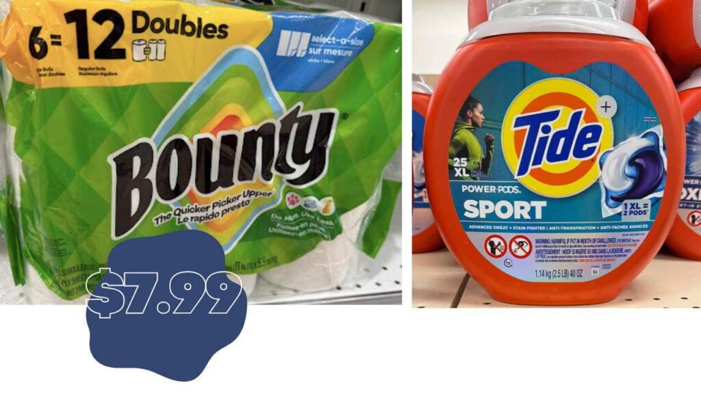 There’s a great $5 ExtraCare Bucks deal when you purchase $25 of P&G products. We also have eCoupons to add in to save even more. Head in and score $7.99 Tide Pods and Bounty Paper Towels!