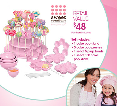 Have no clue what I’m talking about? This is a $48 Pink Bakeware set that includes everything you need to make Cake Pops. Every year they change what’s in the set, so if you make it a habit you’ll have a pink kitchen after a few years.