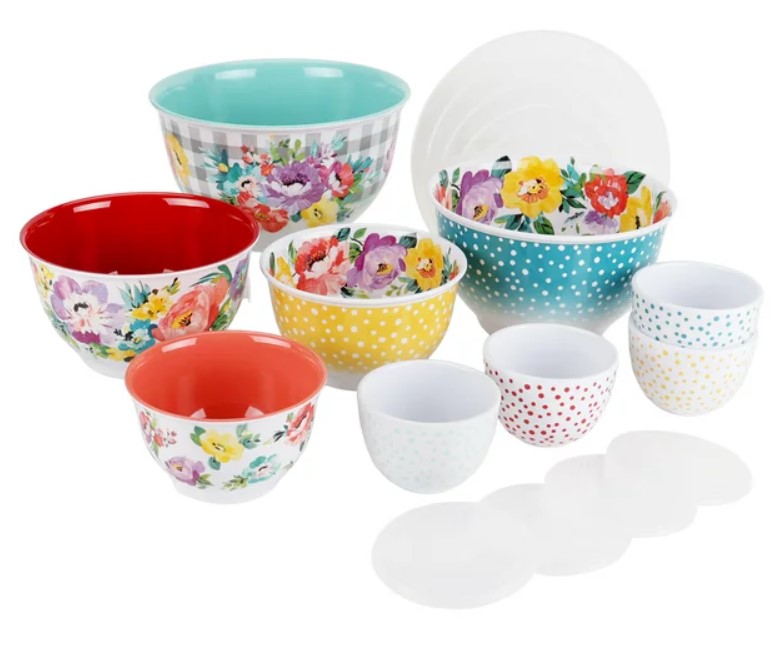 The Pioneer Woman Mixing Bowl Set with Lids, Sweet Romance, 18 Piece Set – 18.40 (reg. $38.50)