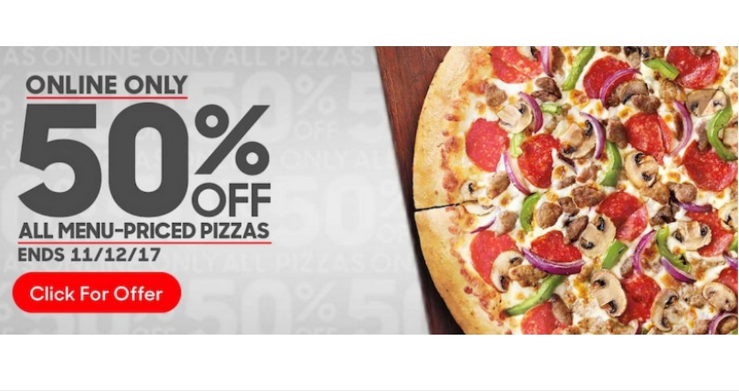 Pizza Hut is offering 50% off regular-priced pizzas when you order online. There is no coupon code needed.