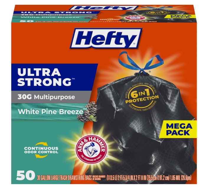Hefty Ultra Strong 30 Gallon Trash Bags, 50-count – $9.99 (reg. $17)