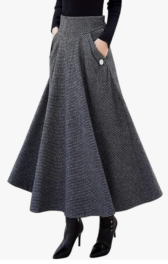 IDEALSANXUN Women’s Fall Winter High Waisted Wool Plaid A-line Long Skirt $29.58 (reg. $42.98)