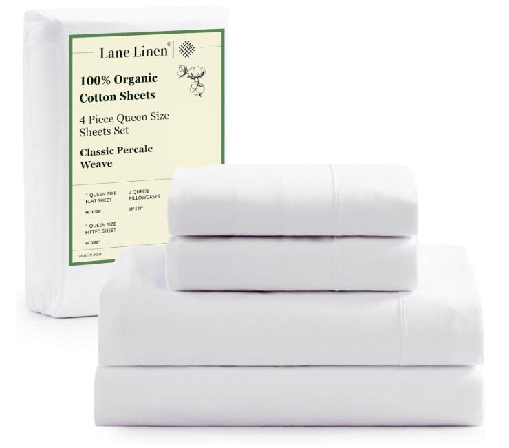 LANE LINEN Eco Friendly 100% Organic Cotton Queen Sheet Set – $28.48 (reg. $60)
