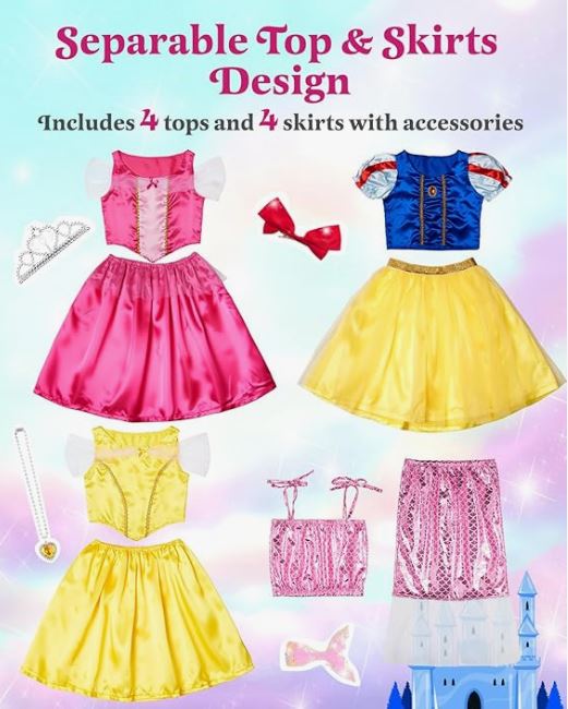 Right now, speed to Amazon and get a whole set of Princess dresses for a crazy price of just $14.49! It’s a 13-piece set!
