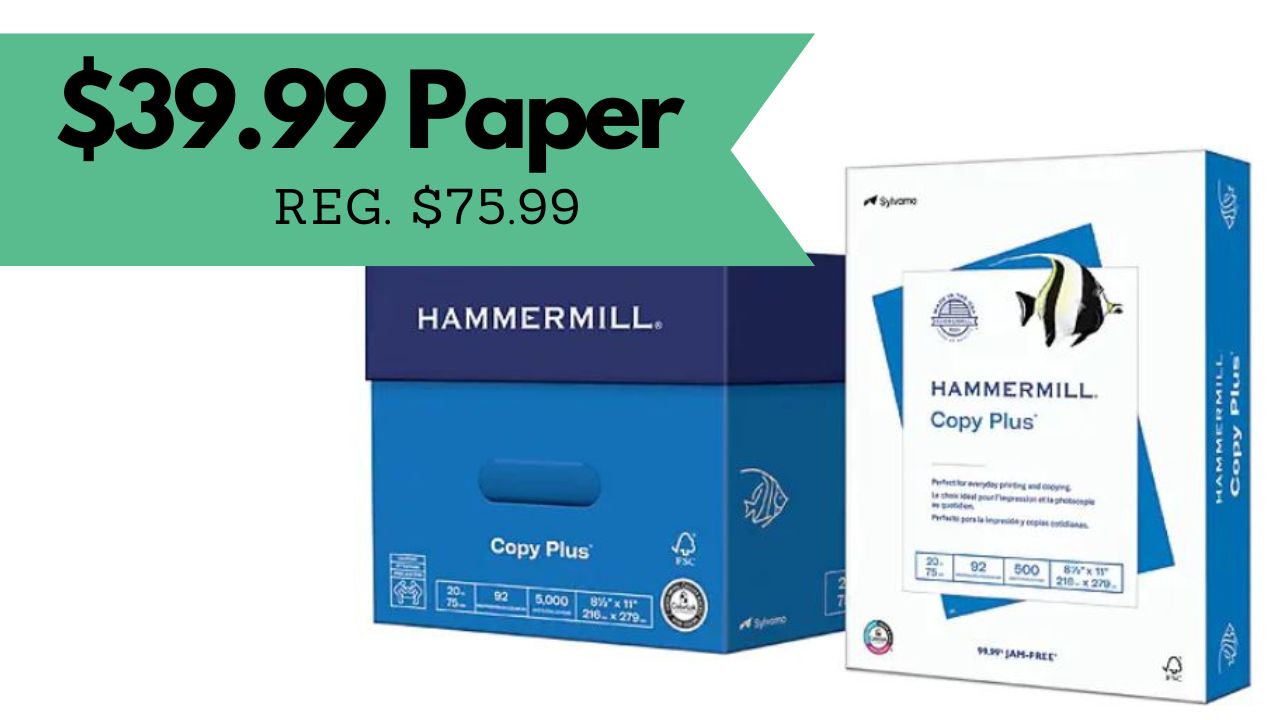 Today only, Staples has Hammermill Copy Plus paper on sale for $34.99 (regularly $77)