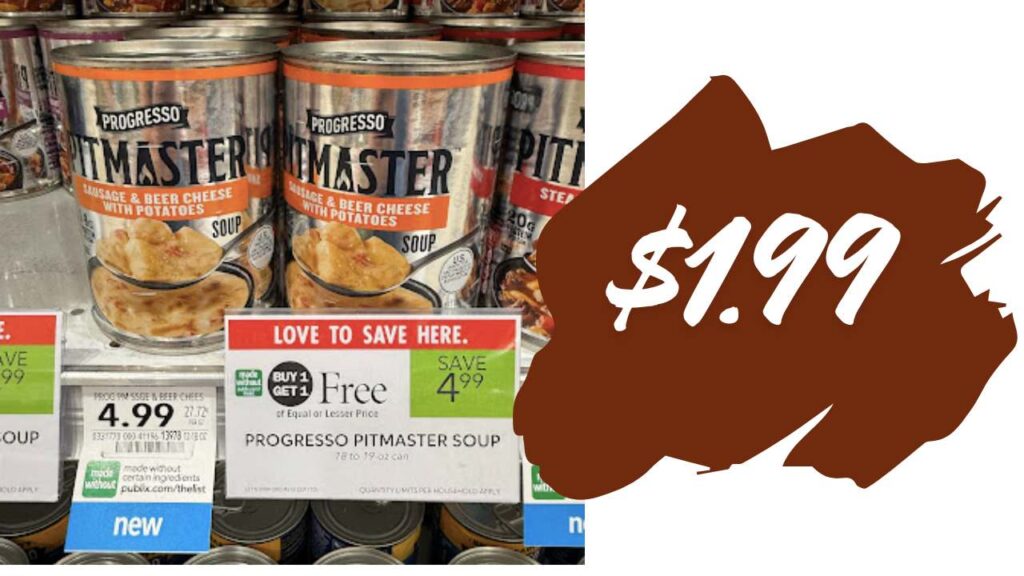 - Progresso Pitmaster Soup, 18-19 oz, B1G1 at $4.99 ($2.49)