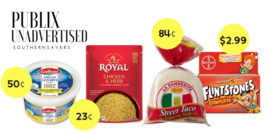 Here are the Publix unadvertised deals I found this week! Look at your store for 84¢ tortillas, fresh mozzarella cheese for 50¢, and more.