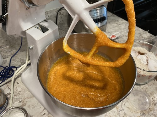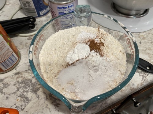- Mix the baking soda, baking powder, cinnamon, salt, and flour in a separate bowl. Then gradually mix it into the wet ingredients.