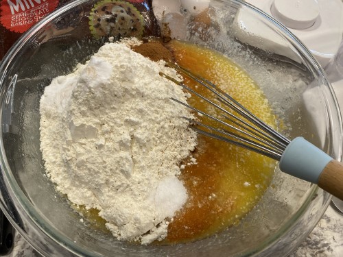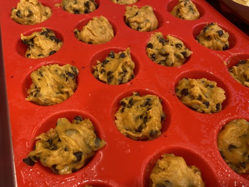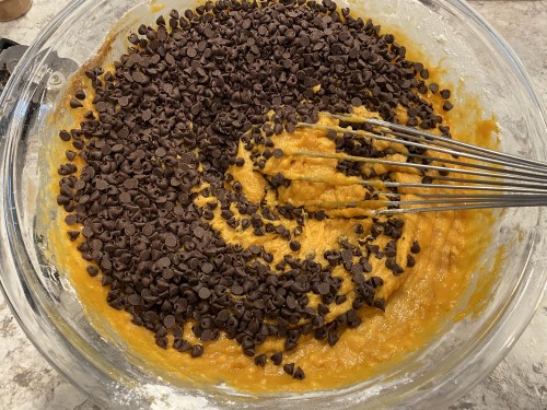 Finally, stir in the chocolate chips. I used mini chocolate chips because I planned to make mini muffins, but you can use the regular sized chocolate chips as well.