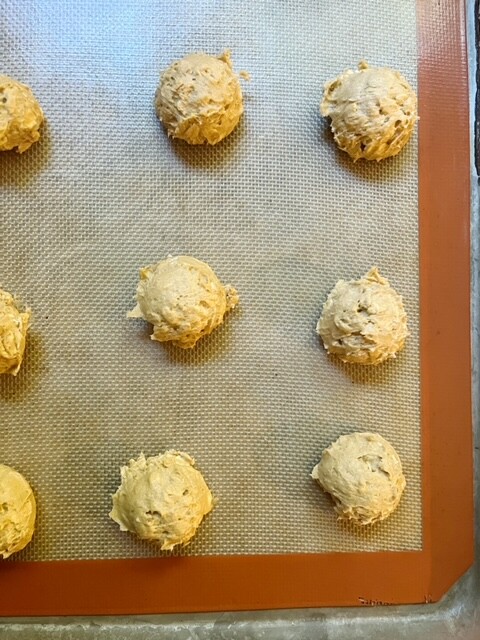 - Use a tablespoon cookie scoop to drop dough onto the baking sheets, making sure to leave some space in between each cookie.