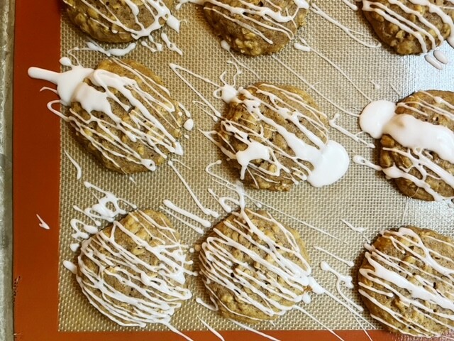 - Using a spoon, drizzle the glaze over the cookies.