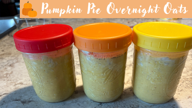 Overnight oats is one of my favorite easy breakfasts to have on hand. If you’ve never had them before, they are eaten cold after sitting overnight in the fridge. They can be flavored with all kinds of different things, depending on what you enjoy. For this time of year I wanted to try to make a pumpkin flavor. The result was delicious, and I will definitely be making this again! These pumpkin pie overnight oats also fit into a variety of eating plans. You can use zero calorie sweetener, nonfat or plain Greek yogurt, and any kind of milk you enjoy.