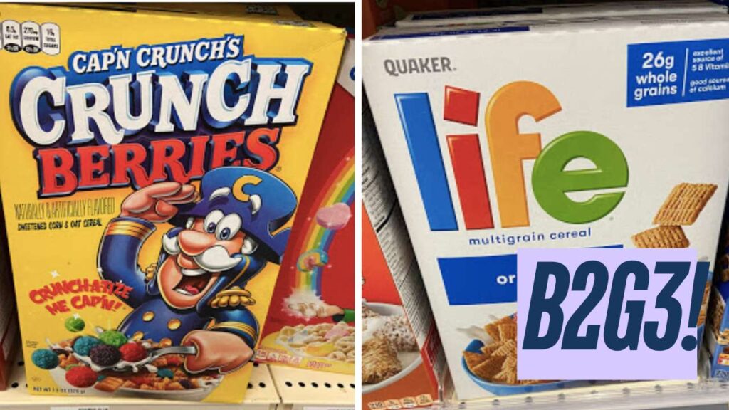 - Quaker Cap’n Crunch or Life Cereal, 10.3-13 oz, B2G3