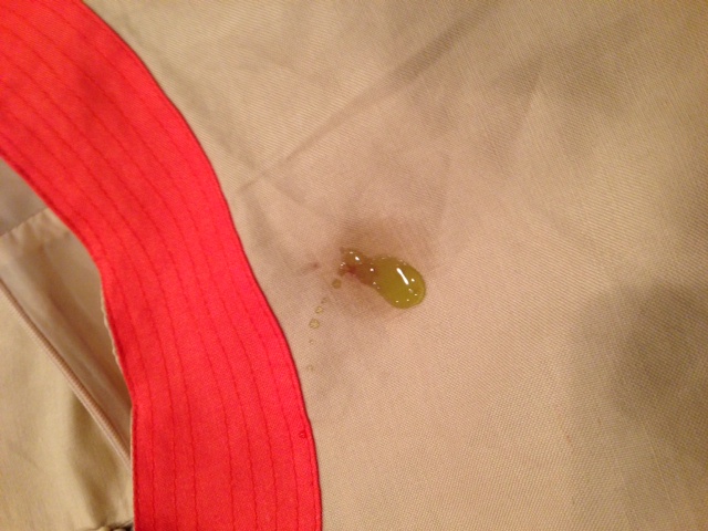 My husband and I went out for a nice date night and I wore a “new to me” dress. During dinner I managed to drip oil right on the top front of it.