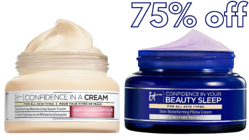 Here’s a skincare steal! Right now at QVC.com get IT Cosmetics Confidence in a Cream Day & Night Duo for $30.98! This pair works great at firming up fine lines. Both items normally sell for $59 individually, making the total discount 75% off!