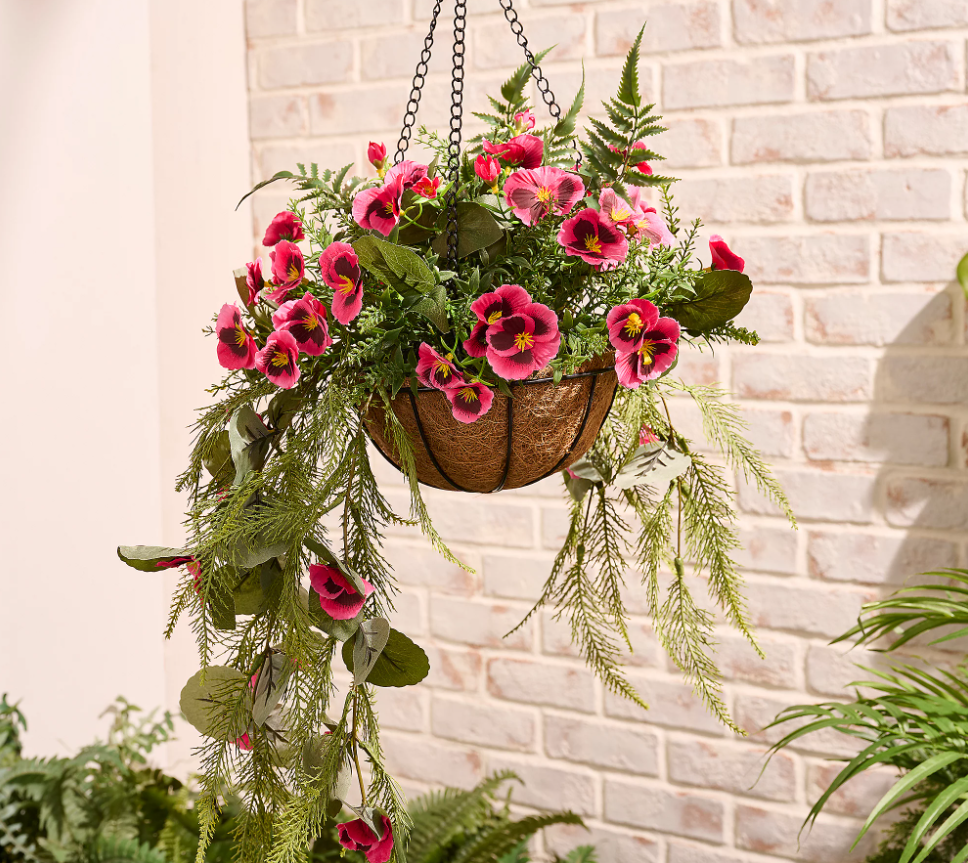 Garden Reflections Cascading Faux Pansy & Fern Hanging Basket – $31.98 (reg. $38)