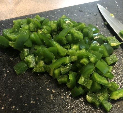 The next step is to dice up jalapenos. Scrape out the seeds unless you want your soup extra spicy!