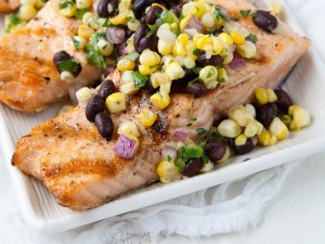 Grilled Salmon with Black Bean and Corn Salsa and Grilled Potatoes