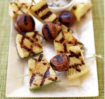 Summer Squash and Mushroom Kabobs with Spinach-Blue Cheese Dip