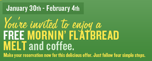 There are two chance at free breakfast next week. First get a FREE Morning Flatbread Melt and Coffee at Subway! In case you haven’t signed up yet you still can! This offer is valid only in South Carolina, Charlotte, Asheville, Augusta, and surrounding areas.