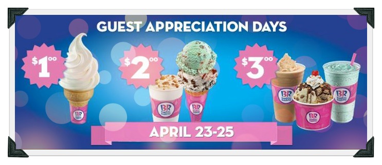 Baskin Robbins – $1, $2 and $3 Treat Specials (4/23 – 4/25)