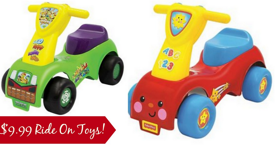 These ride-on toys hold up to 44 pounds, play sounds and music, and feature fun graphics and favorite characters, making them a perfect gift for kiddos ages 1-3.