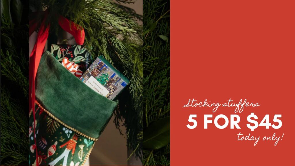 New surpise deals are launching every day at Rifle Paper Co. Today you can fill your stocking with $5 for $45 select items!