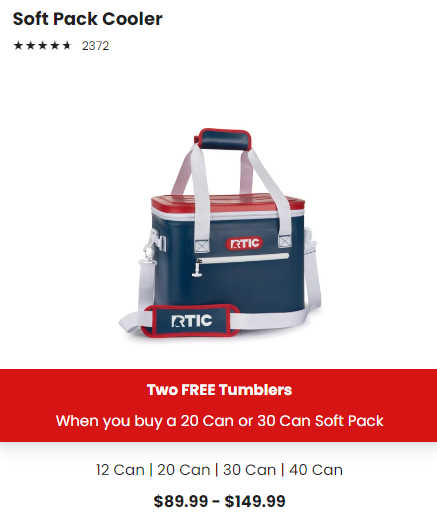 Head to RTIC to score TWO FREE tumblers when you purchase select Ultra-Lite or Soft-Pack Coolers! Prices start at $90.