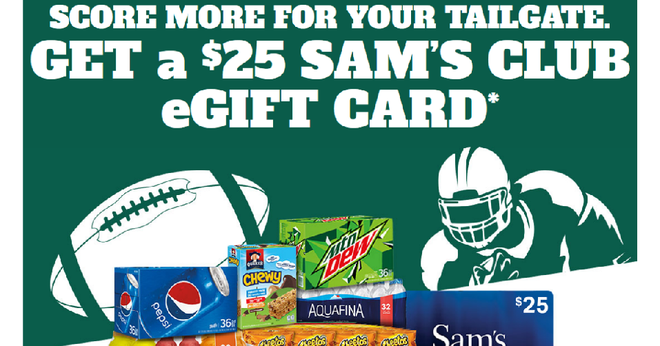 Here’s a fun deal for tailgate season! Sam’s Club is offering a free $25 eGift card with a $50 PepsiCo purchase.
