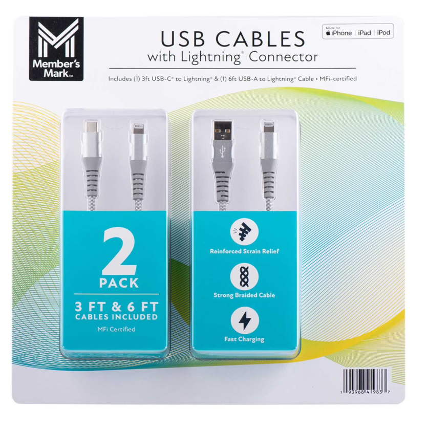 Member’s Mark Apple Lightning to USB cables, 2 pack – $14.91 (reg. $23)