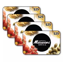 Romano’s Macaroni Grill, $100 value, (4) $25 gift cards – $75