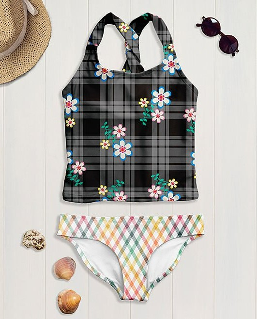 Pixie Girl Black Plaid Floral Tankini – $19.99