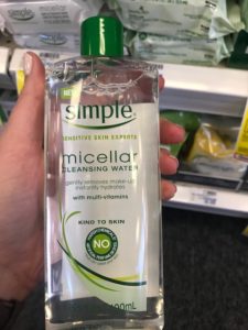 I’m a fan of the Simple Micellar Water. It instantly boosts skin hydration by 90% and cleanses makeup, dirt, oil and impurities all while unclogging pores. It contains no artificial perfumes, dyes or harsh chemicals, so it’s gentle on your skin.