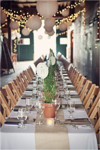 Don’t spend a ton of money on elaborate floral arrangements for the centerpieces. Plants still give life to the room and they’re not as fussy. The best part is that they can double as favors. Whather it’s a fern, something with flowers on it, or another plant, this is a great option. You can buy succulents very cheaply ($2 or less for tiny ones) and they’re easy to keep alive.