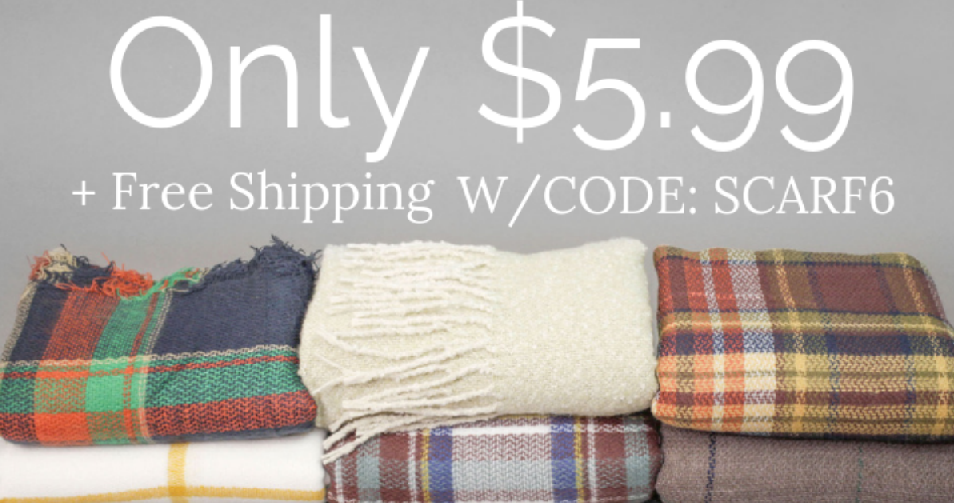 Cents of Style is offering a Scarf Blowout where select scarves are $5.99 shipped, regularly $24.95. Use coupon code SCARF6 at checkout.