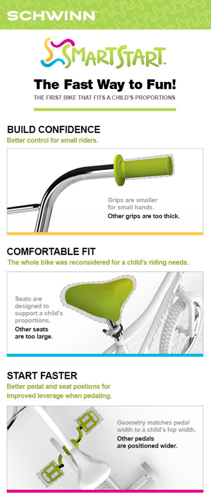 If you have someone that needs a great bike to learn on, the Schwinn SmartStart kid’s bike is a great one to learn on. They are designed with little kids in mind rather than just being shrunk down versions of an adult bike. The seat is sized right, the pedals are in a better position and the handles are easier to reach. We found them at Toys R Us, Academy Sports, and Target, they also sell them online on Amazon.