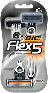 The BIC® Flex Five features five flexible blades. What’s unique is the design handle that has a balancing sphere, which adds weight for better shave control. Additionally, the head includes a lubricating strip, pivots 40 degrees and features a precision edging blade to help shave difficult spots such as under the nose and around side burns.
