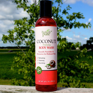 Perfectly Pure Coconut Body Lotion is a lightweight lotion with organic extracts that restores moisture to dry skin. Our Coconut Body Lotion absorbs quickly into the skin of your hands and body, leaving it soft, supple and hydrated with no greasy residue.