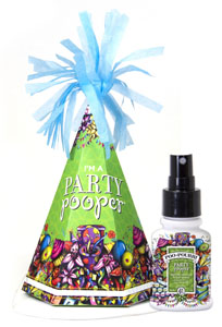 Cheers to a stink-free soiree with the Party Pooper Gift Set that doubles as a festive party hat! Before celebrating, give the bowl a preemptive spritz with the 1.4oz Party Pooper spray, a pure natural blend of mandarin, lily, and tangerine.