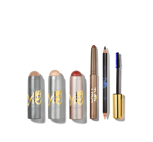 Tyra’s 6-minute TYover set includes Sculpt in a Stick, Light in a Stick, Cheek in a Stick, Eyes in a Stick, Line Em Eyeliner and Smack My Fat Lash Mascara.