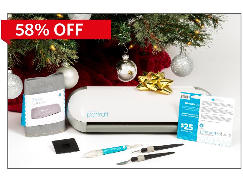 The Silhouette Portrait package includes the cutting machine, Silhouette software, one month of Silhouette Club access, and much more.