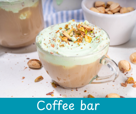 For another beverage option, set up a coffee bar with assorted creamers, syrups, milk options. If you have a large crowd, make sure to include sugar-free options as well as non-dairy options. You can do this with a drip coffee maker or a single-serve coffee maker!