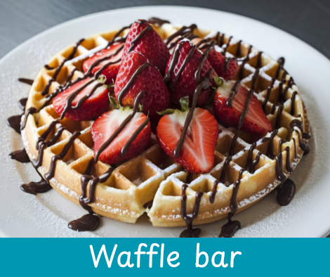 You can use my one bowl waffle recipe or even use frozen waffles. Have toppings like whipped cream, fruit, chocolate chips, and chocolate syrup.