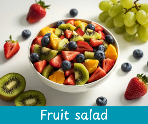 Many berries are in season at this time of year, but you can use whatever fruit is on sale to make a yummy fruit salad.